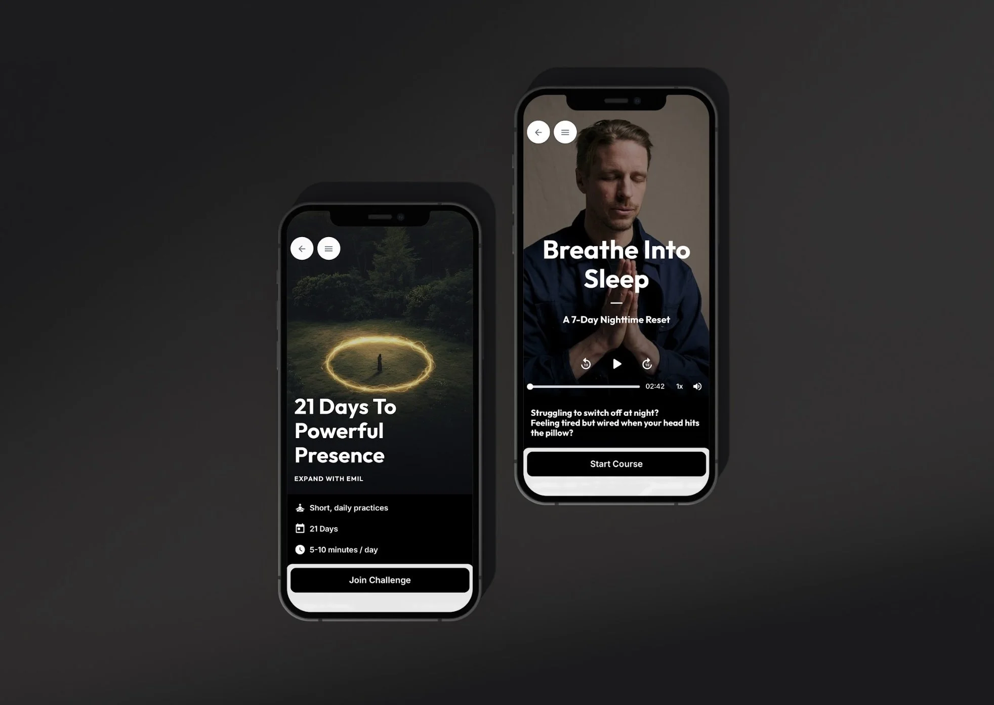 With 85+ guided breathwork sessions, meditations, courses and much more the Expand w. Emil is your daily companion to find freedom from within.